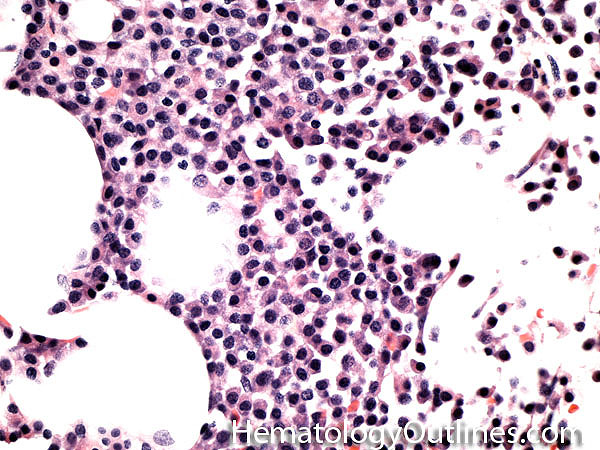 Plasma cell Leukemia | This is a very aggressive plasma cell neoplasm with an increased number circulating plasma cells in the peripheral blood (usually >20% of WBCs). |