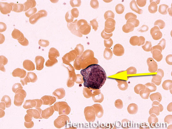 Polychromatophilic | Usually refers to the polychromatophilic RBC which is less mature non-nucleated red blood cell with a light basophilic (light blue-purple) color on peripheral smear which is due to the presence of cytoplasmic RNA. Increased numbers may be seen in certain anemias such as hemolytic anemia in which earlier RBCs are being released by the reactive bone marrow in response to the anemia with the earlier release of these less mature RBCs into circulation. Special stain can highlight the RNA molecules in these cells and on the special stain these cell are known as reticulocytes.